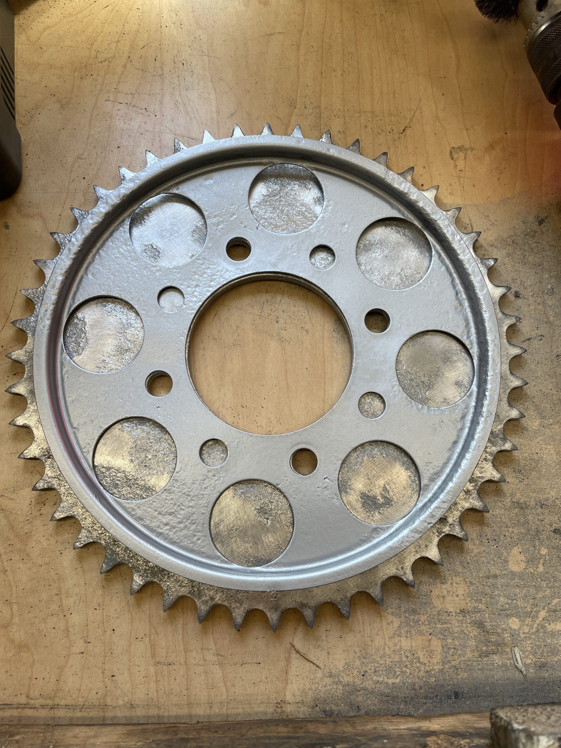 Initially I cleaned and disassembled the bike and assessed the condition. It turned out to be in much worse condition than I suspected- but the engine was not seized. In fact, the engine was in quite good condition mechanically. However, the gas tank was completely rusted out, brakes seized, wheels rusted nearly through and it needed to be rewired. Some parts were missing entirely. I stripped everything down, sent the frame to be powder coated and then began restoring mechanical systems. All parts were carefully removed, placed in plastic bags and labeled with pertinent information