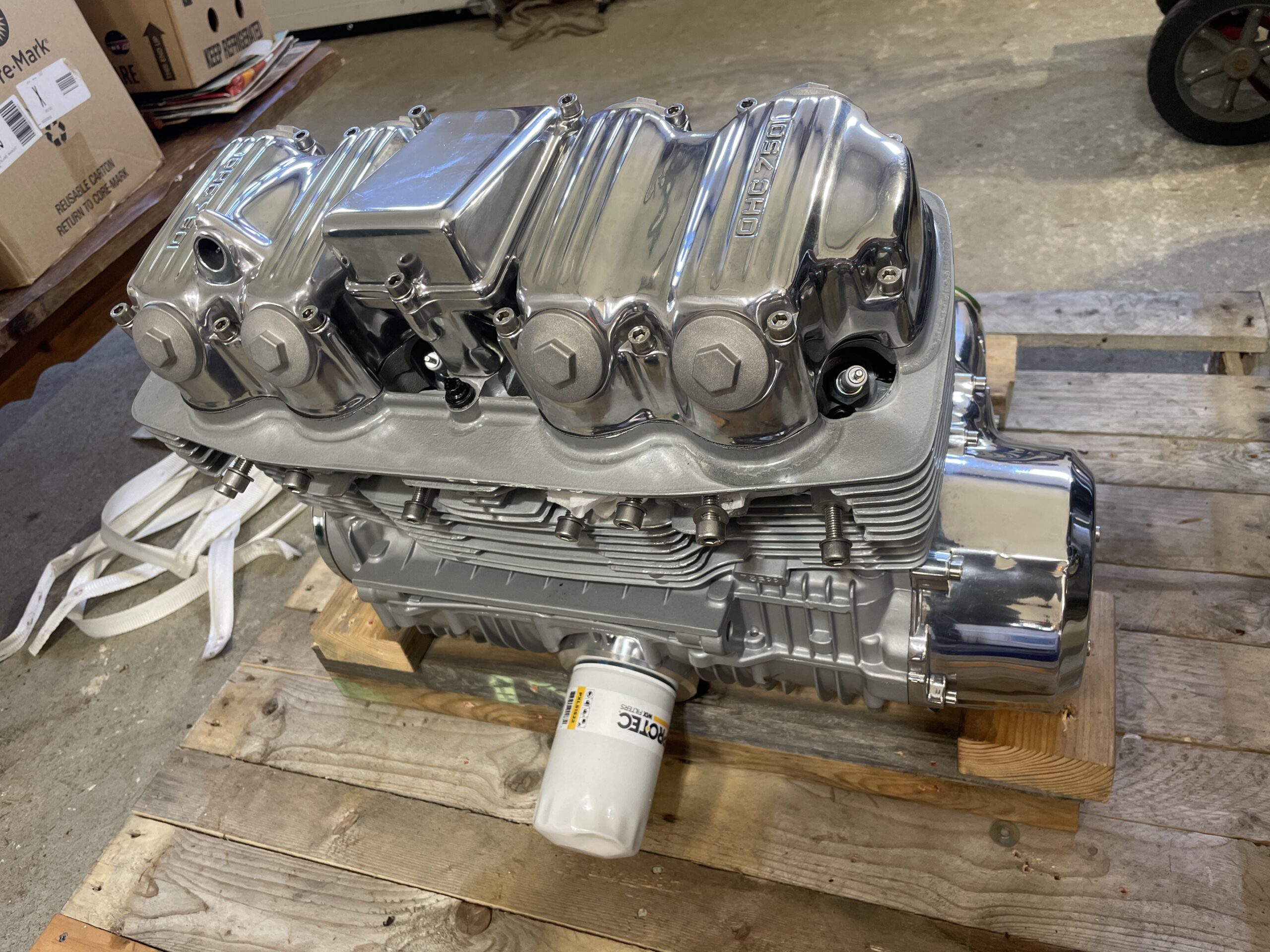 I decided to have the engine professionally built by CycleX in Wisconsin http://www.cyclexchange.net . I cannot say enough good things about Cycle-X, they are friendly, knowledgeable and very helpful. The owner, Kenny, has been building and modifying SOHC Honda engines for many years and could do this engine some justice. I also had him do this because I suffered a major setback during the initial engine build on the parts bike. I had to use the cylinders from this bike on the parts bike in order to assemble a working engine. However, I was left with a set of cylinders that were virtually unusable. Fortunately, Kenny was able to rebuild the cylinders, install a Wiseco 836cc big bore kit and some other performance products. During the build he aptly said, “Oh, your goin’ to love it!”- and I do!