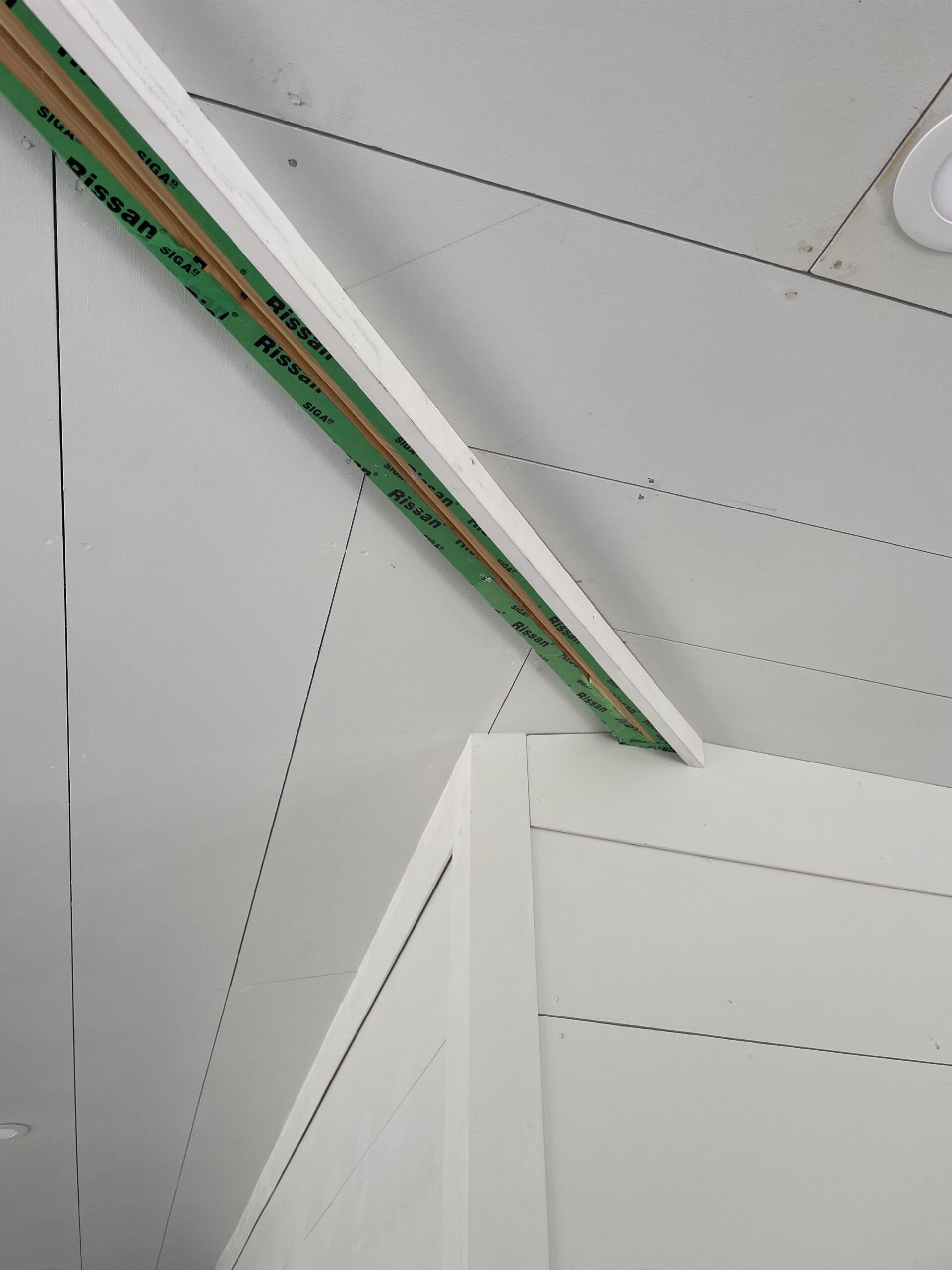 The owners chose exterior siding products in two interior spaces of the home. The two areas are unheated so this is an excellent choice for this application. This is the sun room which uses a product from Louisiana Pacific called LP SmartSide wide board siding. I took great care to install this using consistent gaps and a dark backing material behind the gaps. This has given the space a clean looking and modern appearance in keeping with the owner’s intent. The rain screed technique was also used on the exterior walls of the house to provide good ventilation. The space is bright, attractive and durable and will serve the occupants well for many years!